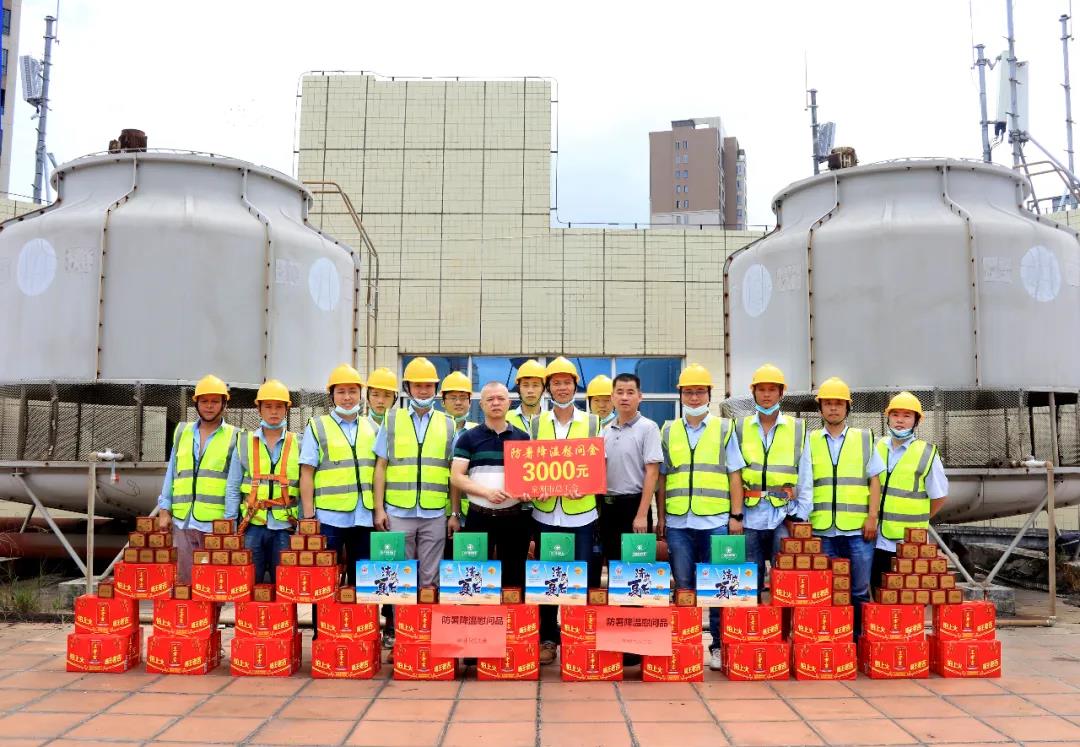 7月2日上午,泉州市总工会党组成员、副主席陈宝芳,副调研员林东阳一行,在公司工会主席郑尊强陪同下,冒着35度的高温,来到泉州大长江公司大厦顶楼亲切慰问正在进行5G基站施工的一线工人,并将3000元慰问金和一份份降温解署用品送到正在挥汗工作在高温环境下的工人手中,让他们在滚滚热浪的天气里感受温馨和清凉。