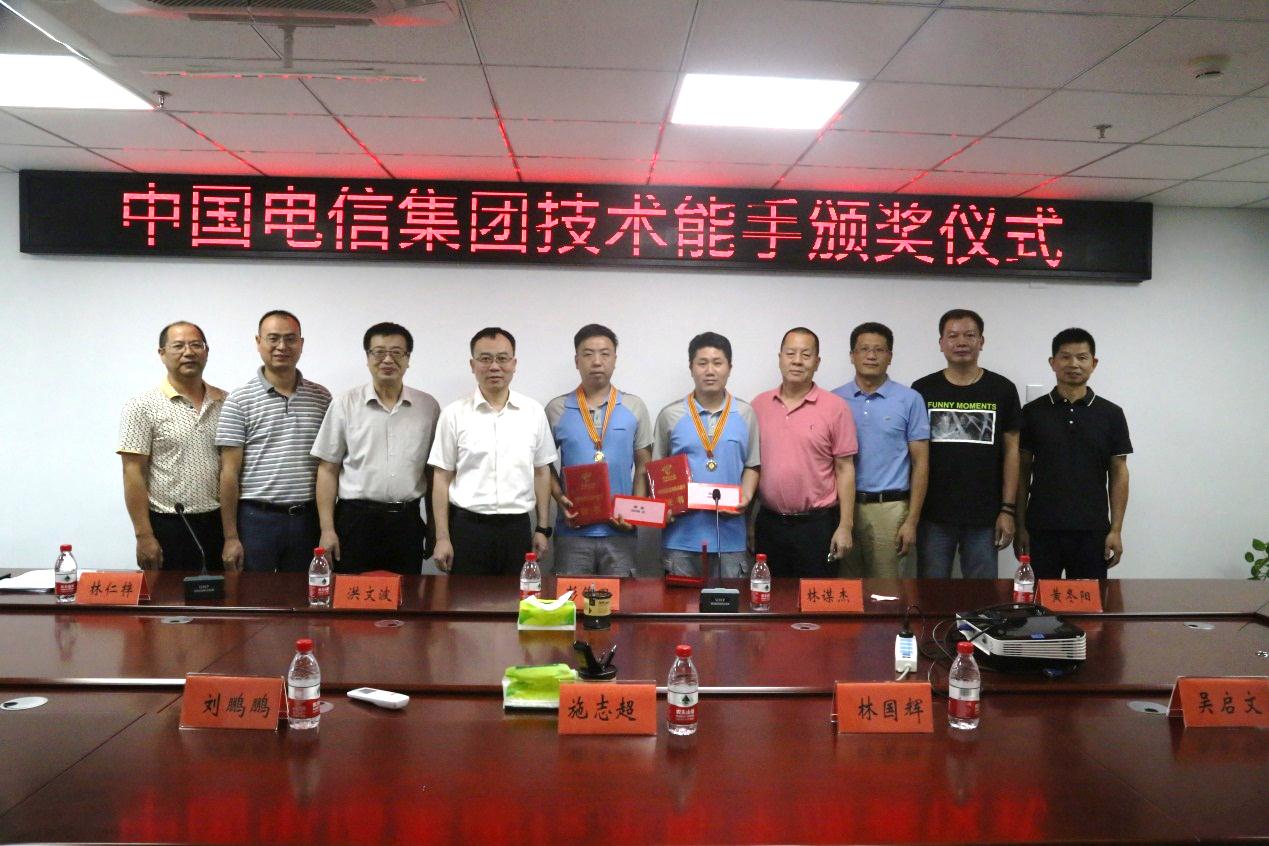 为表彰先进,树立典型,9月15日上午,福建电信技术公司在泉州举行“中国电信集团技术能手”颁奖仪式,泉州电信分公司彭锦图副总经理、福建通服市场部林谋杰主任、电信技术公司洪文波副总经理等为获奖选手颁奖。