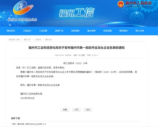 5月28日,福州市工业和信息化局公布了福州市第一批软件业龙头企业名单,联通(福建)产业互联网有限公司获评软件业“龙头企业”荣誉。在此之前,联通(福建)产业互联网有限公司已获评“国家高新技术企业”、“福建未来‘独角兽’企业”、“2020福建战略性新兴产业企业100强”等荣誉,并被长乐区政府认定为“长乐企业总部”和“长乐总部企业”。