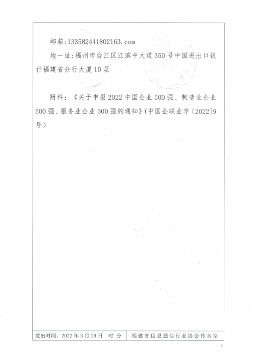 转发《关于申报2022中国企业500强、制造业企业500强、服务业企业500强的通知》