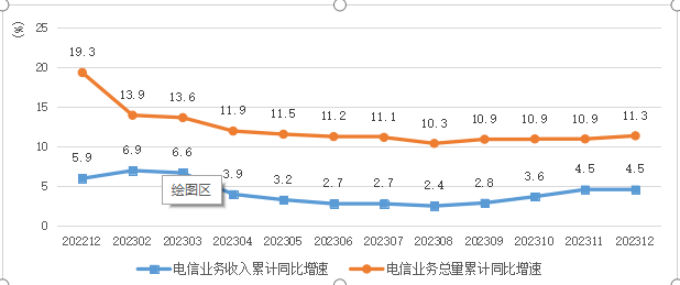电信业务收入增速保持平稳,电信业务总量增速小幅提升。1-12月,全省电信业务收入为526.3亿元,同比增长4.5%,增速与1-11月持平;按上年不变价计算的电信业务总量为537.9亿元,同比增长11.3%,增速较1-11月提升0.4个百分点。