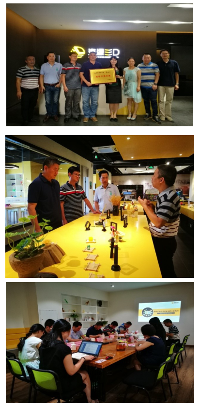 省邮校一行6人参观了校外实训基地展示的3D技术在生活、建筑、珠宝设计、动漫设计、生物医疗等行业的前沿应用,校企双方就“海源三维高科”订单班的人才培养目标、核心课程建设、学生实训、师资队伍等方面进行了探讨,对未来三年3D人才的培养达成了一致。双方决定,在“海源三维高科”订单班采用“每生一档案,每生一作品,每生一专长,每生一项目”的四个“一”培养模式,共享企校资源,共同培养学生技能和职业素养,打造品牌的3D订单班产业人才。