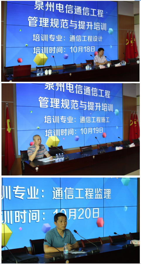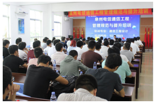 10月18-20日,为期三天的泉州通信工程管理规范与提升培训活动在福建省鸿官通信工程有限公司举行。来自福建省邮电规划设计院、福建省鸿官通信工程有限公司、中邮科通信技术股份有限公司、纵横监理公司、公城监理公司等单位相关项目管理人员、技术人员共400余人参加了此次培训。