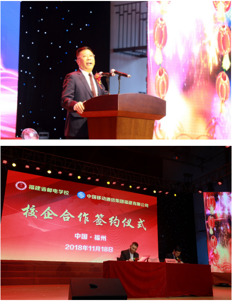 庆典大会上还举行了校企合作签约仪式。福建省邮电学校先后与中国移动通信集团福建有限公司签订专业建设与师资培养合作框架协议,与中国电信股份有限公司福州分公司签订智慧校园合作协议,与长实通信科技有限公司福建分公司签订课程建设与实训基地合作框架协议。此次签约仪式将使校企合作进一步向纵深推进,人才培养模式改革取得更大成效,相信校企双方将会实现合作育人、互惠双赢的局面。
