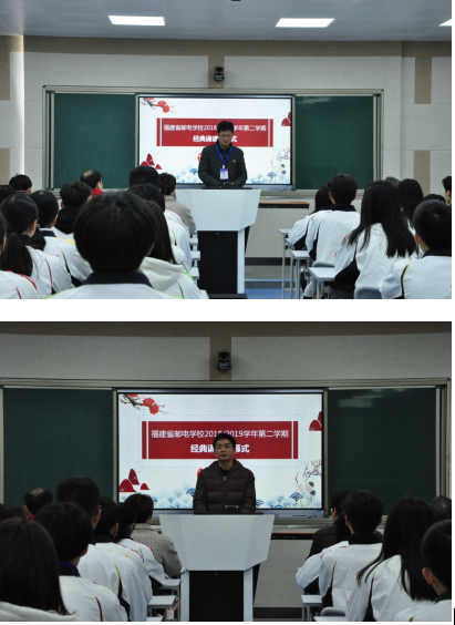 2月26日下午,福建省邮电学校以录播室为主会场、各班教室为分会场,通过网络直播的形式举行“福建省邮电学校2018-2019学年第二学期国学经典诵读”开幕式。副校长徐锡光、相关科室负责人及全校学生参加了此次开幕式。