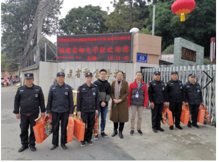1月20日上午,福建省邮电学校副校长苏嵘看望慰问春节期间仍坚守岗位的保安人员,向他们致以新春的祝福和节日的问候。 苏副校长同保安队员一一握手,详细询问了解他们的工作、生活情况,对春节期间为保障学校平安而放弃与家人团聚机会坚守在值勤岗位的保安队员表示了衷心的感谢,并致以亲切的慰问和节日的祝福。同时,她要求大家再接再厉,春节期间不要麻痹大意,尤其要加强校园的安全值守工作。 保安员纷纷表示,感谢学校领导的深切关怀,一定不辜负期望,做好校园各类安全保障工作,确保寒假期间校园安全稳定。