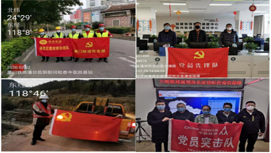 五、授旗党员突击筑堡垒。福建铁塔各级党组织均已成立通信保障突击队,将党旗插在防疫通信保障第一线,做到哪里任务险重,哪里就有党组织坚强有力的工作,把疫情防控通信保障工作作为党员践行“两个维护”,守初心、担使命的具体行动。宁德铁塔成立2支党员先锋队,南平铁塔成立由26名党员组成的防疫综合支撑和应急通信保障突击队,厦门铁塔成立通信保障党员先锋队、后勤关爱党员先锋队,漳州铁塔向各支部下发疫情防控倡议书。