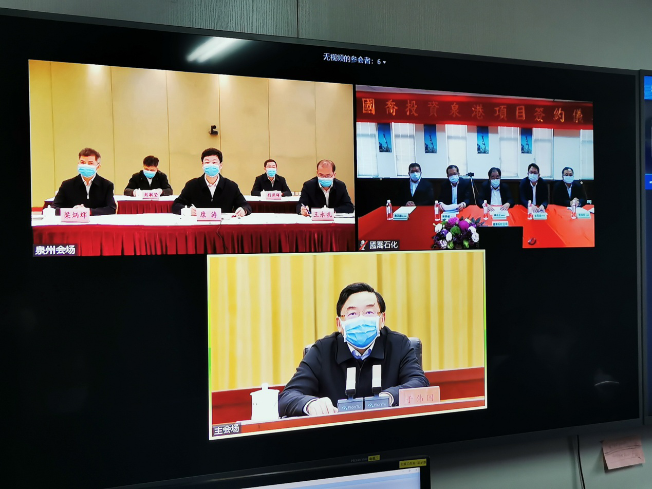 3月2日,国乔泉港石化项目通过中国联通云视频平台实现福州、泉州、高雄三地视频连线,顺利实现闽台重大经贸合作从“面对面”到“屏对屏”的“云上”招商引资。福建省委书记于伟国、省长唐登杰在福州通过视频三方连线见证了签约。